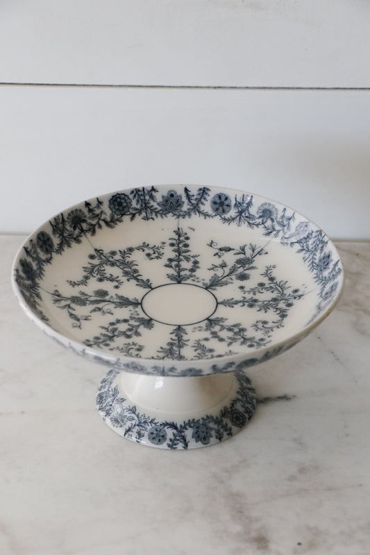 Antique Blue Floral Compote